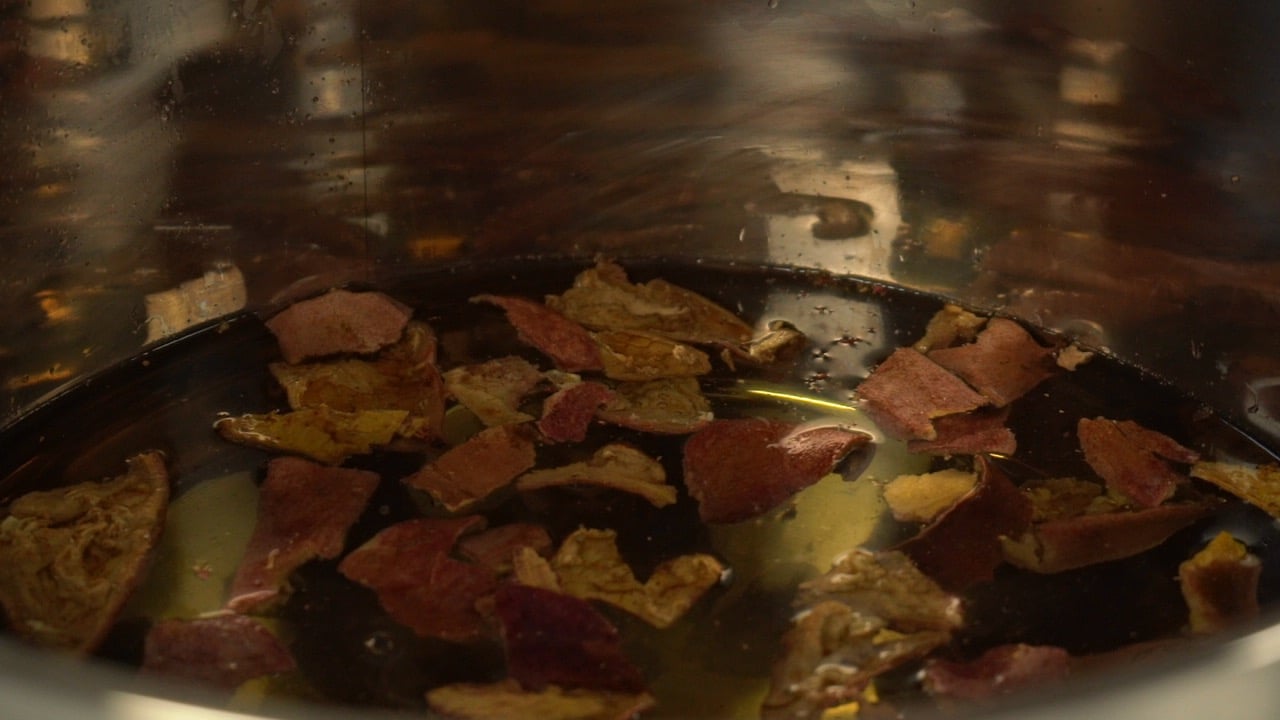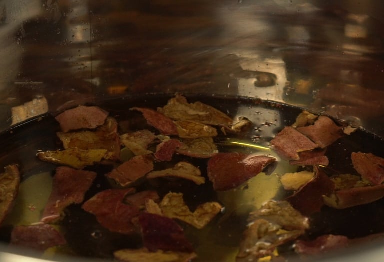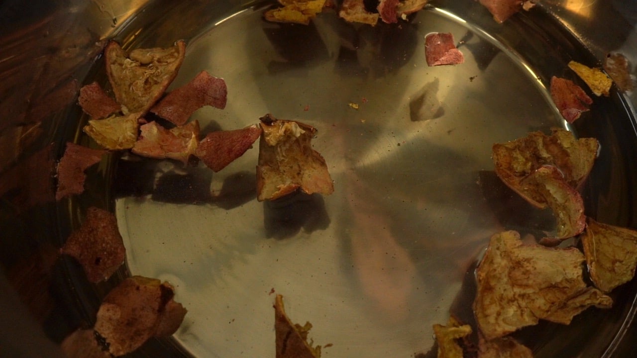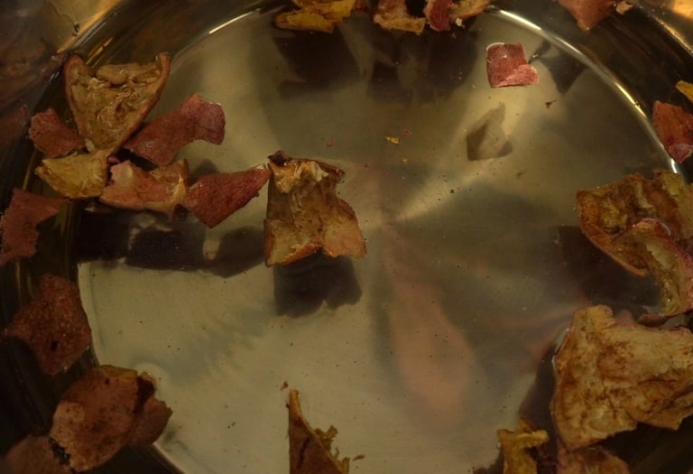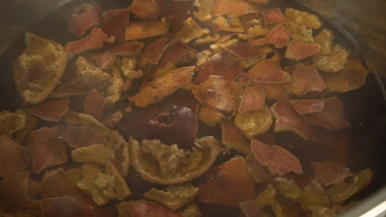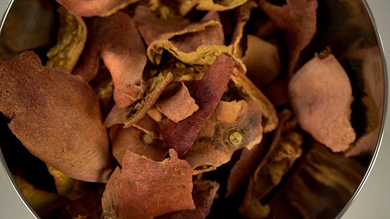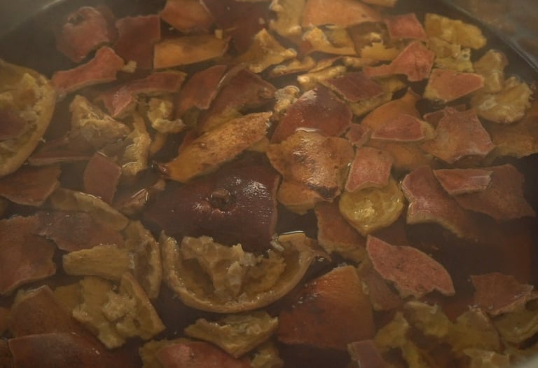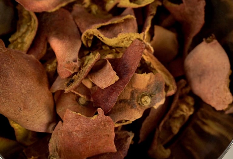 Simmer such dried rinds a bit longer than advised in a recipe above because these dyestuff pieces are larger and may need more time to release all colorants.