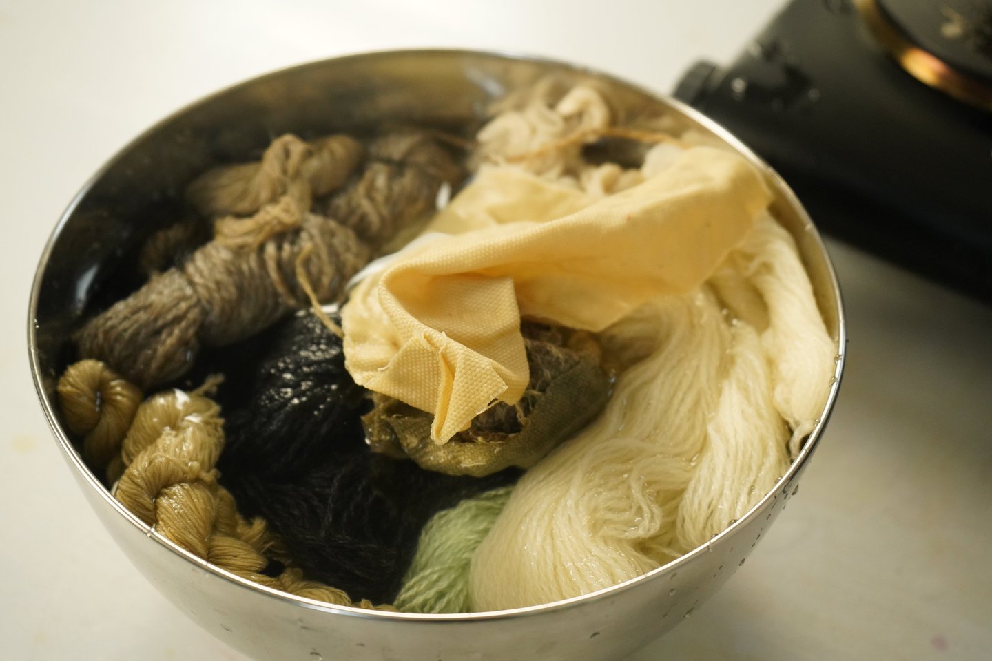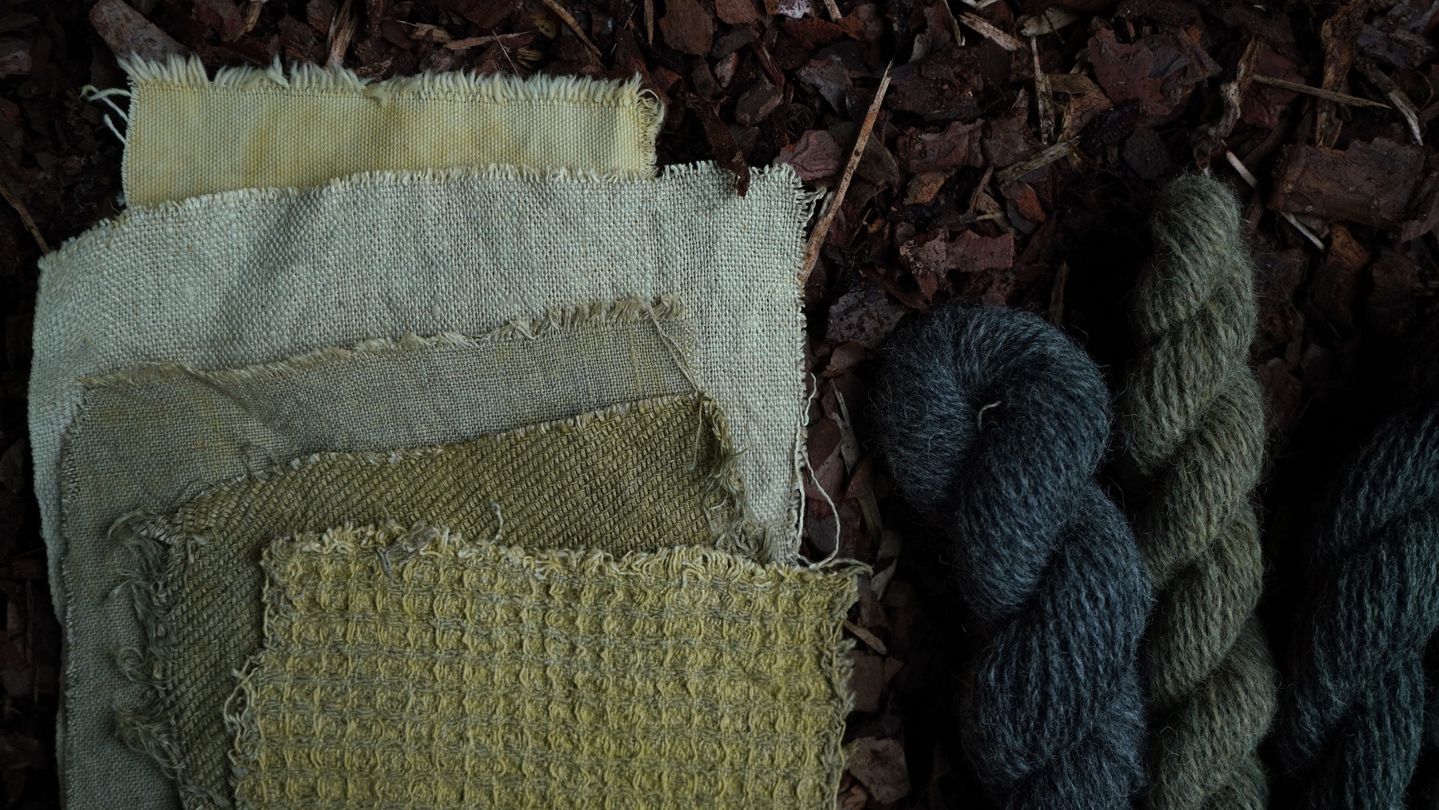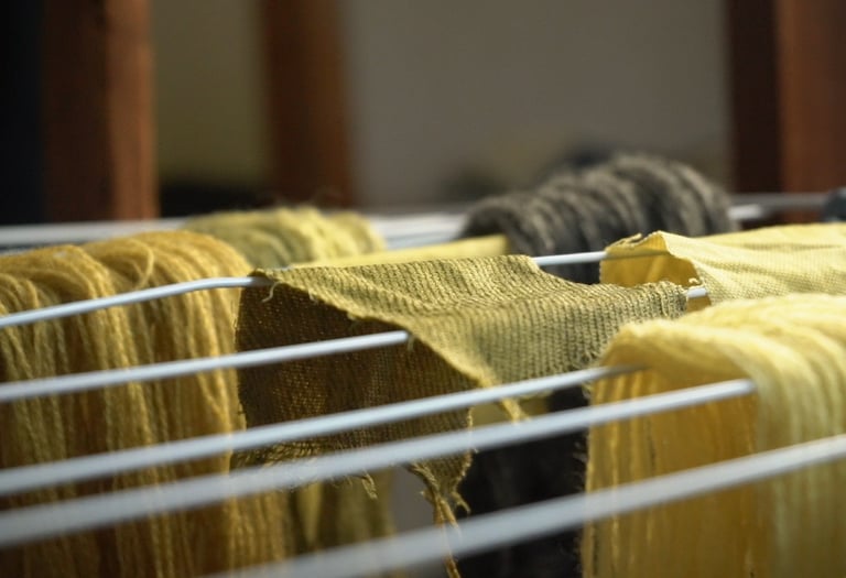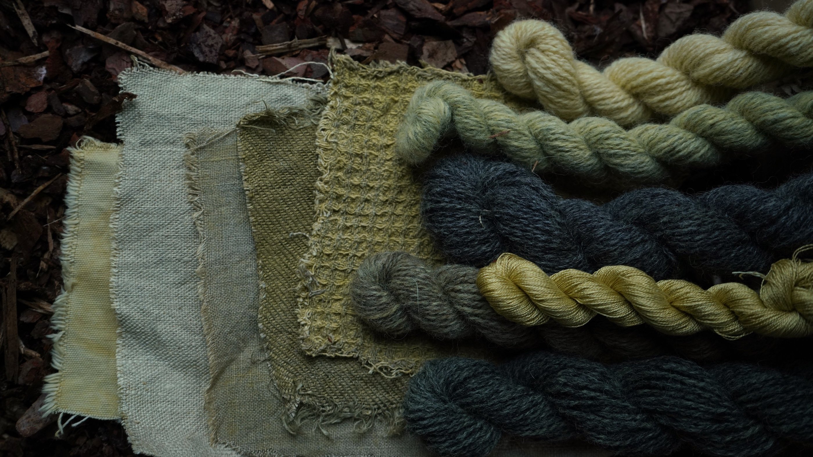 For the purpose of this article, I've taken various fibers and different wools treated with various mordants and dyed them all together in the same solution. I prefer doing this when testing new plants or recipes because it's an excellent way to explore the diverse possibilities one recipe can produce and observe how different fibers or mordants react. I'm particularly excited to share these results with you!