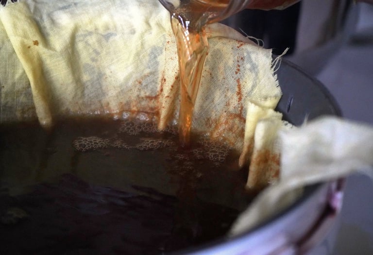Strain through a fine cloth to keep small particles out of the dye bath.