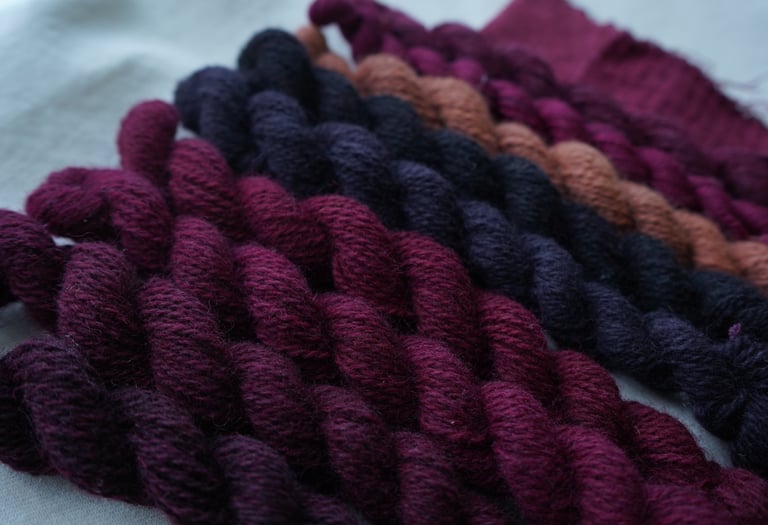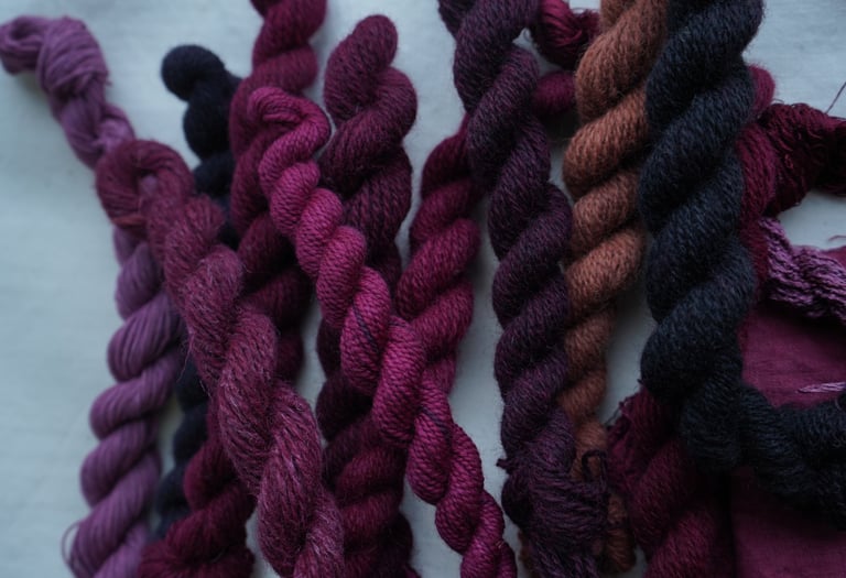 For the purpose of this article, I've taken various fibers and different wools treated with various mordants and dyed them all together in the same solution. I prefer doing this when testing new plants or recipes because it's an excellent way to explore the diverse possibilities one recipe can produce and observe how different fibers or mordants react. I'm particularly excited to share these results with you!