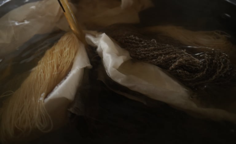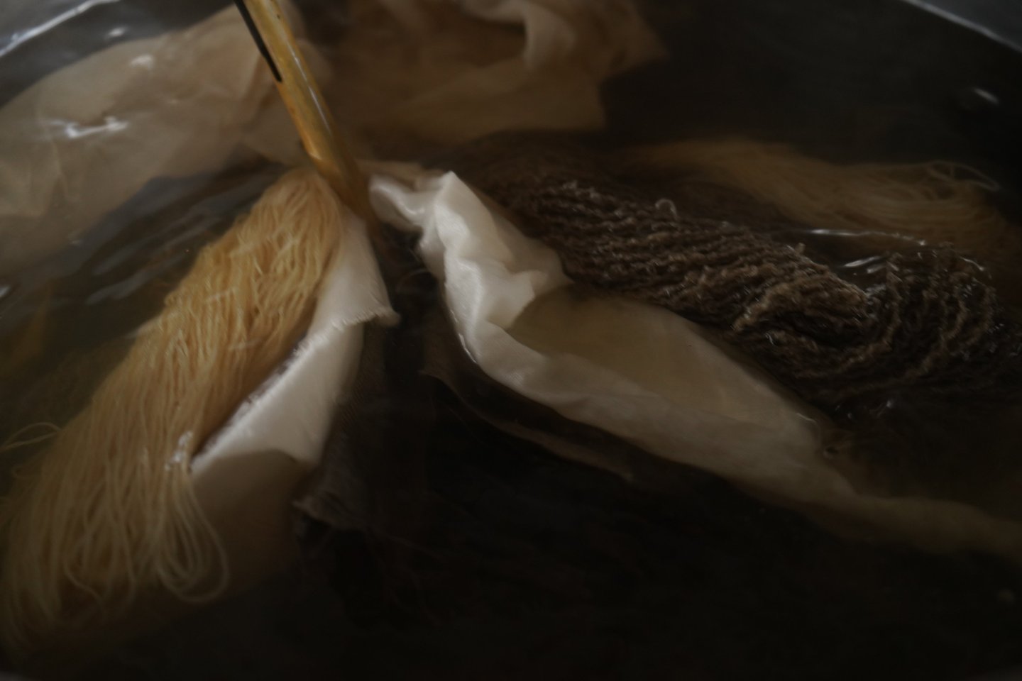 Washing and scouring are inseparable parts of the natural dyeing process for those aiming for the best results. Before mordanting and dyeing, it is important to clean the fibers from various oils, waxes, starch, pectic substances, dirt, and other particles that will otherwise act as a barrier between fibers and mordants or dyes. Such a situation may result in uneven or lighter colors or low quality results, for example, naturally dyed fibers may have lower resistance to rubbing or may not be lightfast. That's why scouring is an important step which should not be ignored.